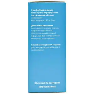 - 2 ml of solution for inhalation and oral administration contain 15 mg of ambroxol hydrochloride;