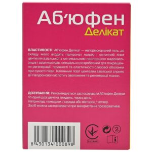 Abufene Delicate significantly improves the natural restoration of the vaginal mucosa due to the content of hyaluronic acid and centella asiatica cell lysate.