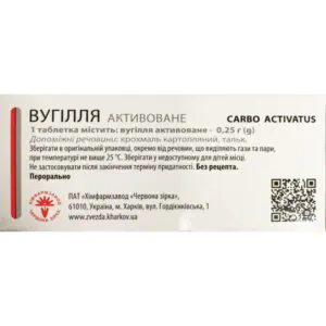 1 tablet contains: activated carbon – 0.25 g;
