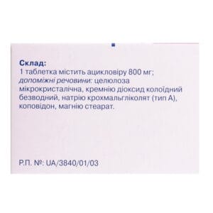 The tablet should be taken whole with water. When using high doses of acyclovir, adequate hydration should be maintained.