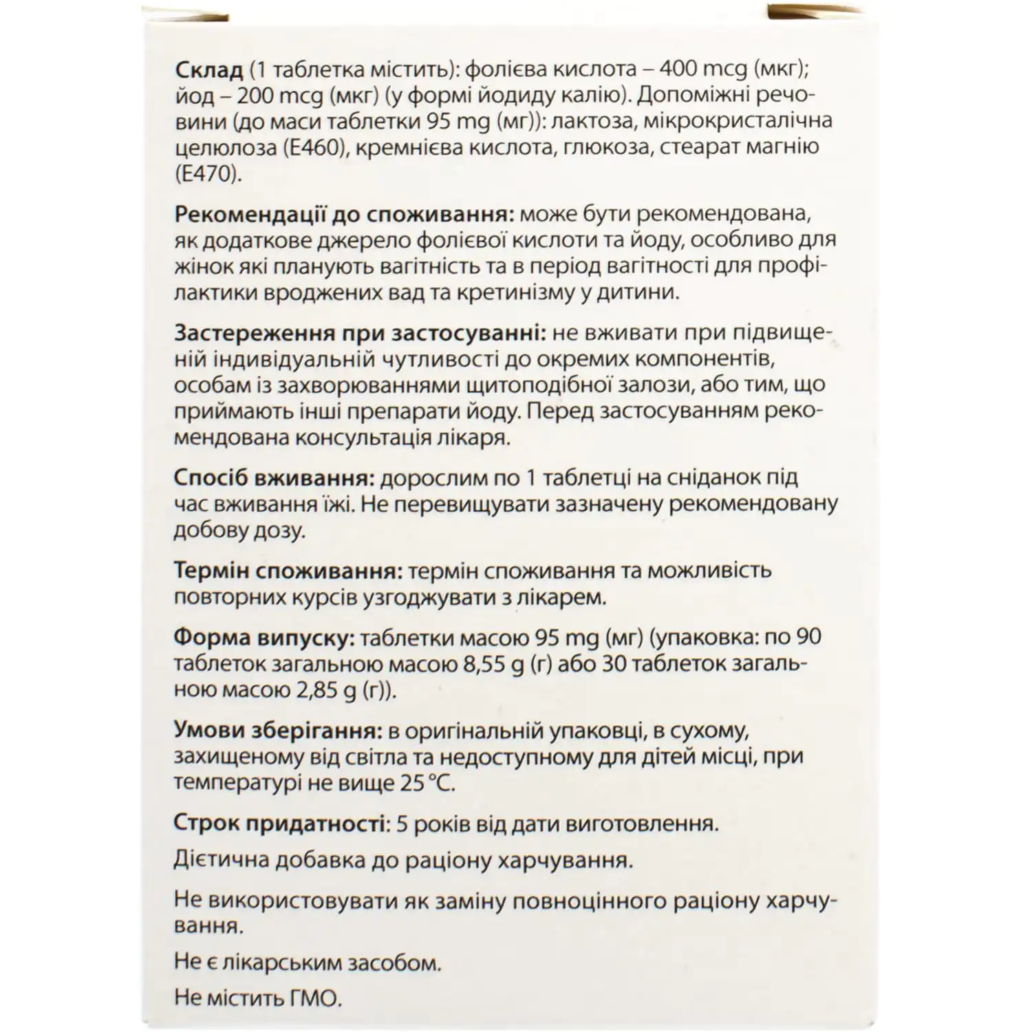 - Iodine – 200 mcg (in the form of potassium iodides).