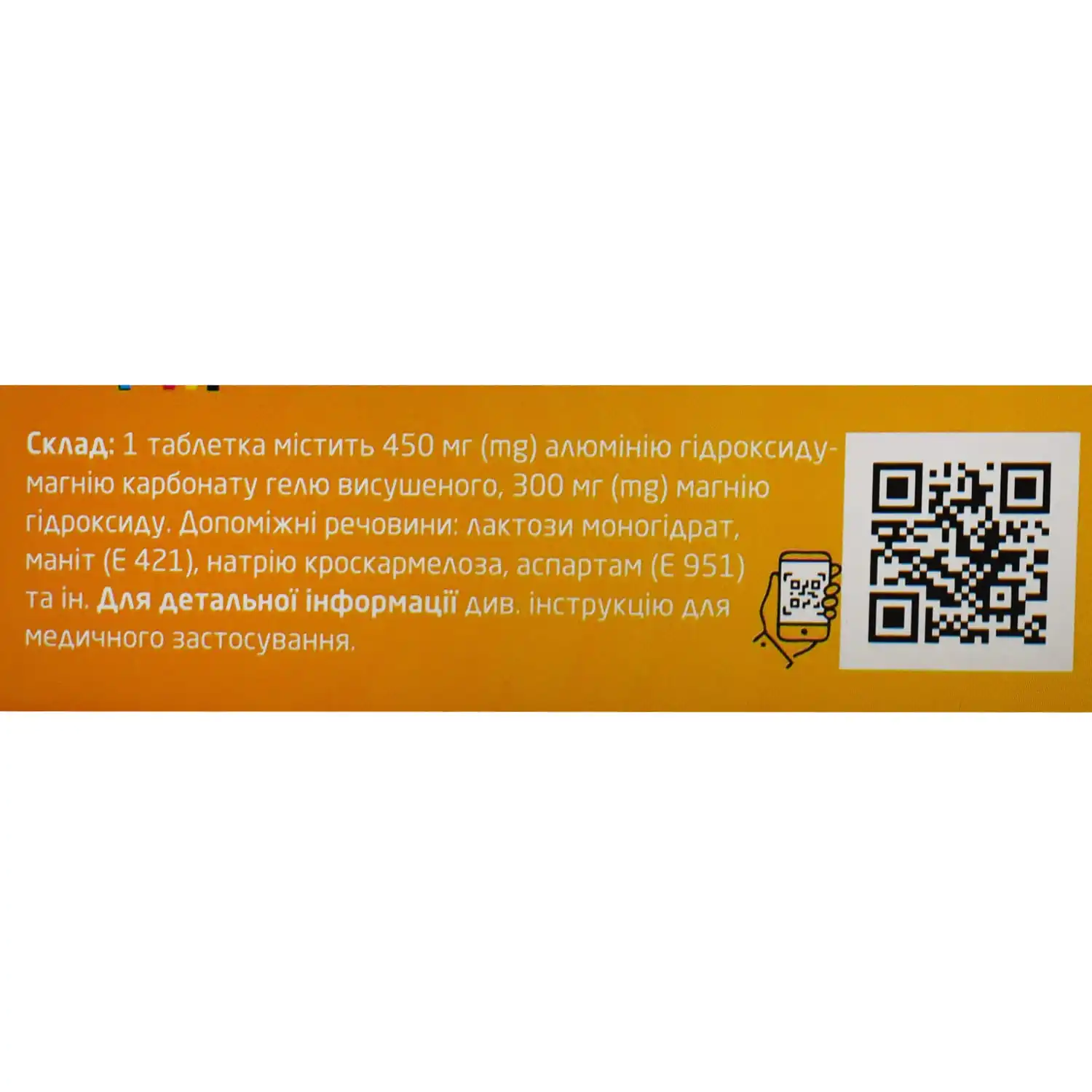 - active ingredients: 1 tablet contains 450 mg of aluminum hydroxide-magnesium carbonate gel dried, 300 mg of magnesium hydroxide;