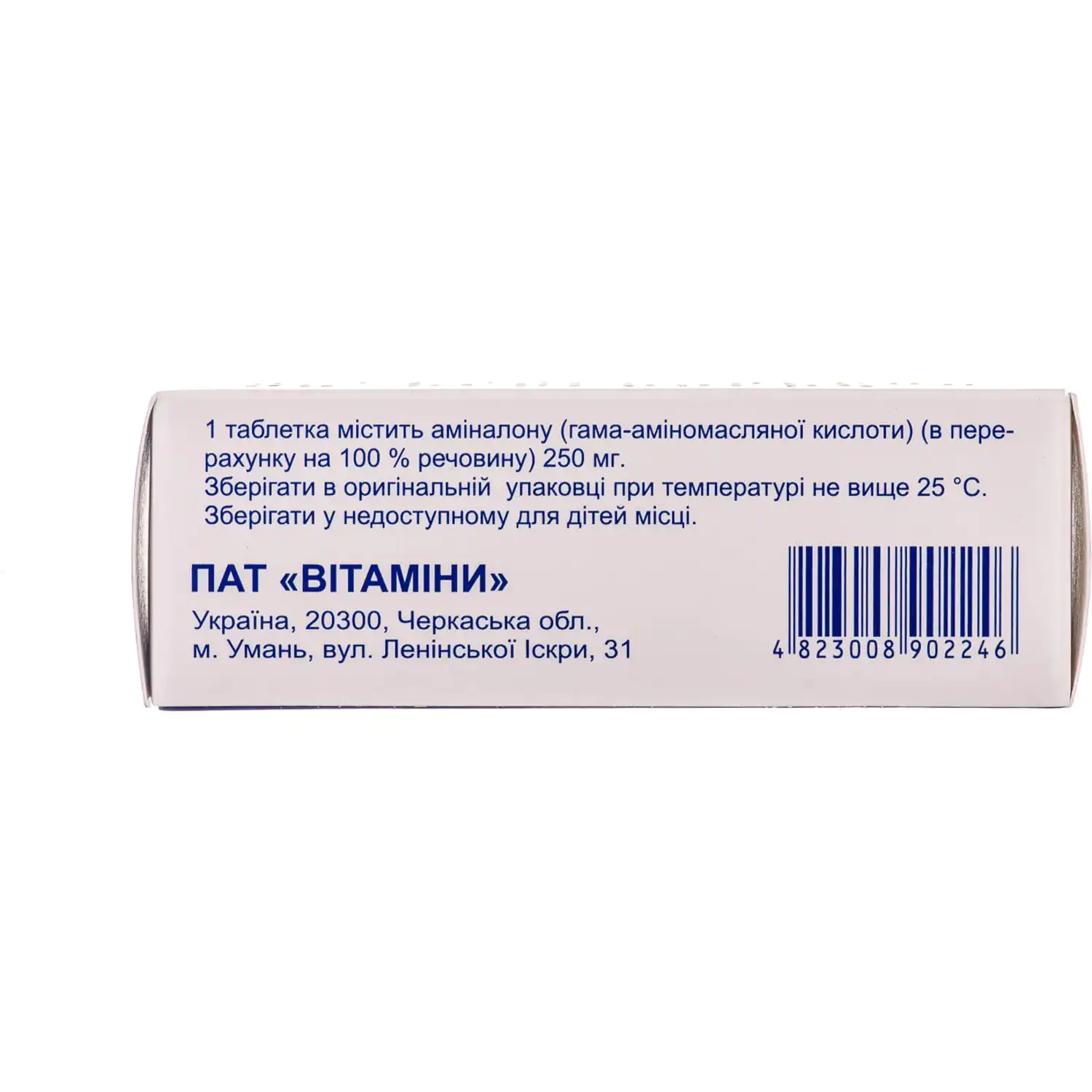 1 tablet contains aminalon (gamma-aminobutyric acid) (calculated as 100% substance) 250 mg;