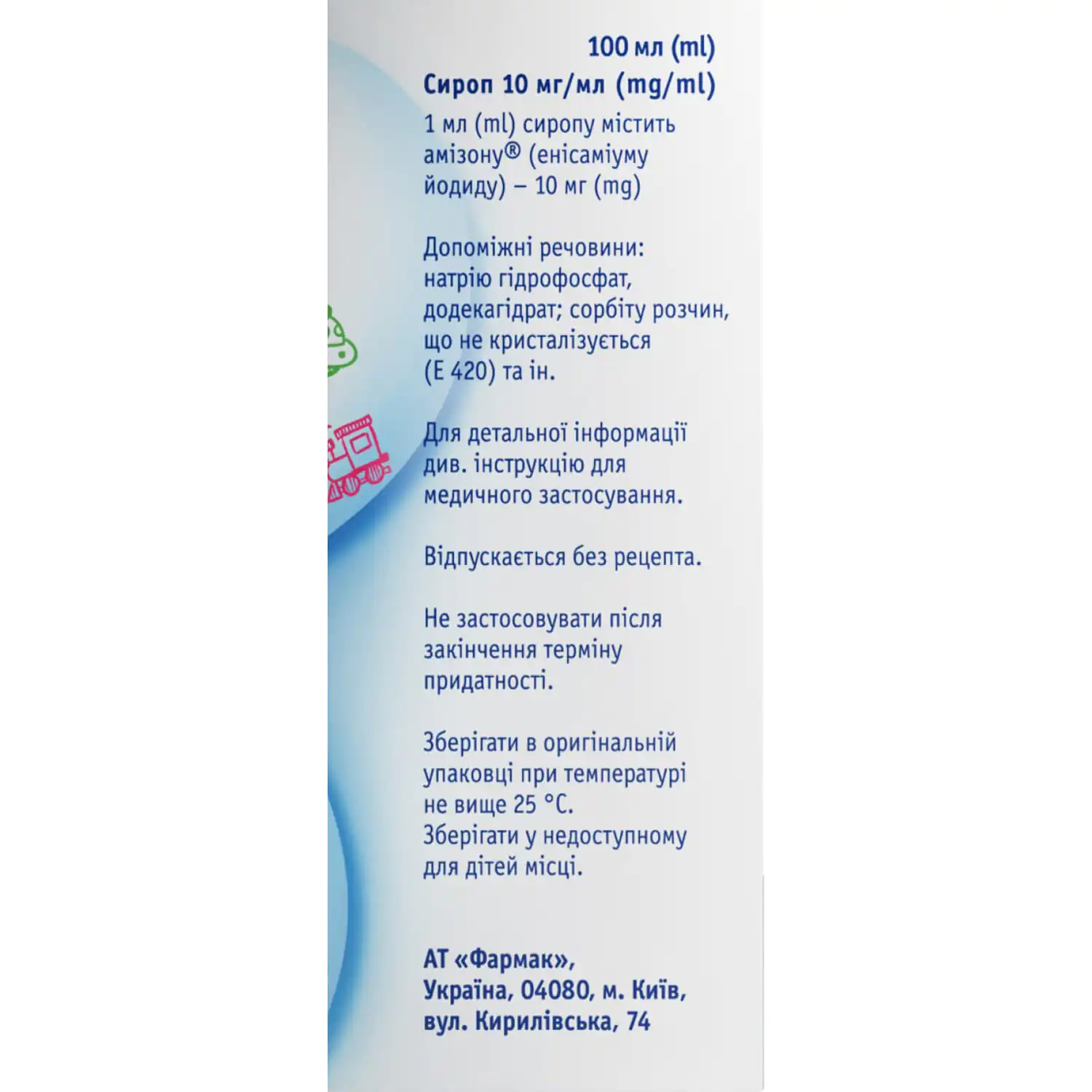 • 1 ml of syrup contains Amizon (enisamium iodide) 10 mg;