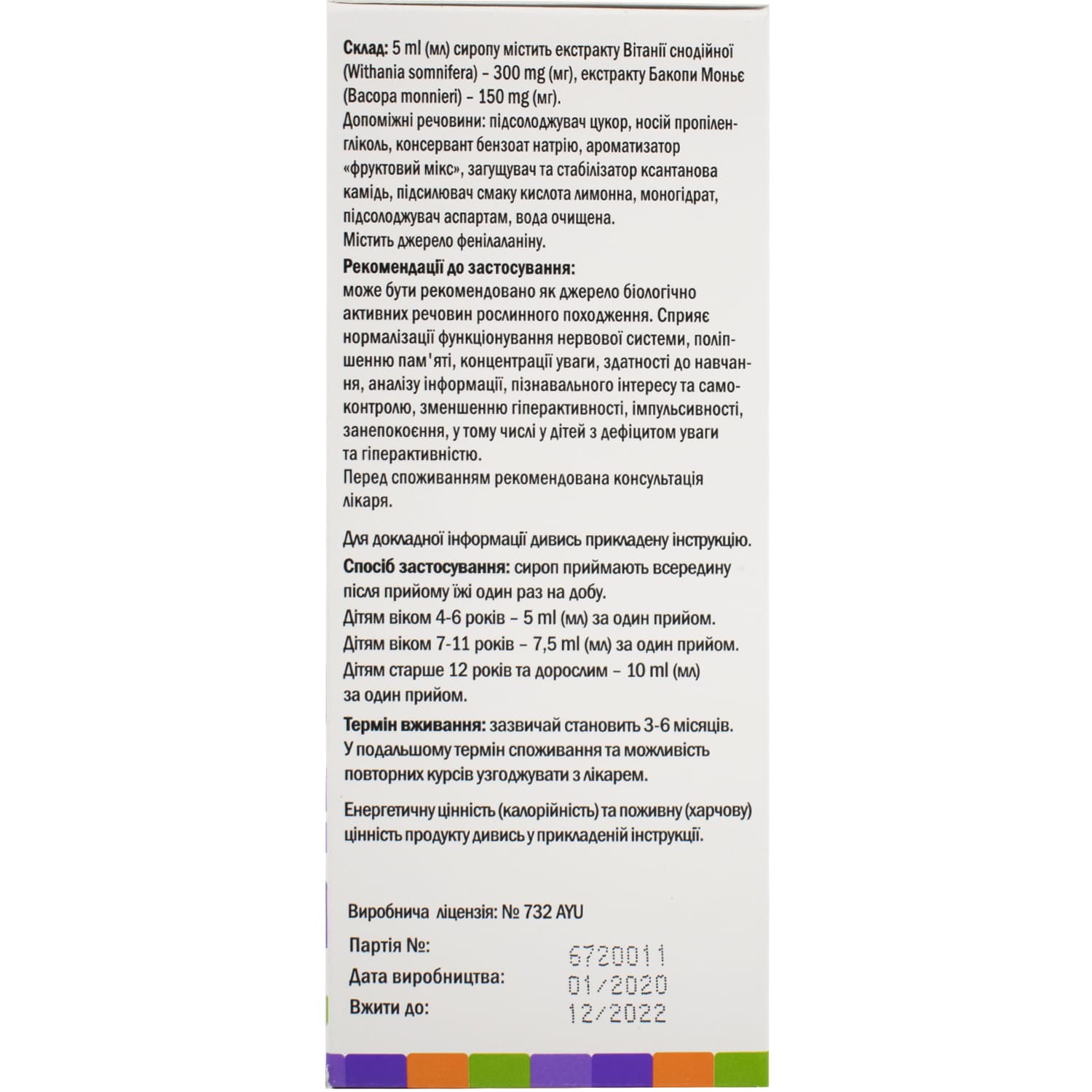 Bacopa Monnier. The positive effect and good tolerability of Bacopa Monnier in children with attention deficit and hyperactivity disorder have been established: reducing symptoms of impulsivity, inattention, hyperactivity, improving self-control and attentiveness when passing tests. Bacopa Monnier is an effective means for the prevention and correction of cognitive disorders (concentration of attention, memory, perception and analysis of information) associated with cerebral ischemia, improves the speed of information processing and accelerates the ability to make decisions. The active components of Bacopa Monnier (bacosides) by increasing kinase activity stimulate the recovery of damaged neurons, neuronal synthesis, synaptic activity and transmission of nerve impulses. The use of Bacopa Monnier helps to increase the level of γ-aminobutyric acid in the hippocampus, exhibits nootropic, antidepressant, anxiolytic and antioxidant effects, has neuroprotective properties, as well as anticonvulsant and anti-inflammatory effects.