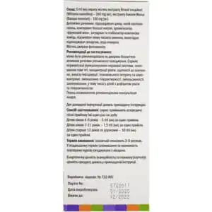 Excipients: sugar, propylene glycol, sodium benzoate (E211), xanthan gum, citric acid monohydrate, aspartame (E951), “fruit mix” flavoring