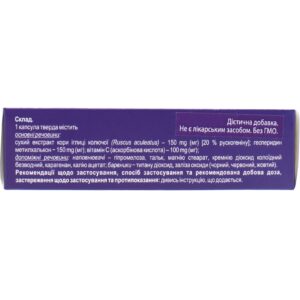 • dry extract of Ruscus aculeatus bark – 150 mg [20% ruscogenin];