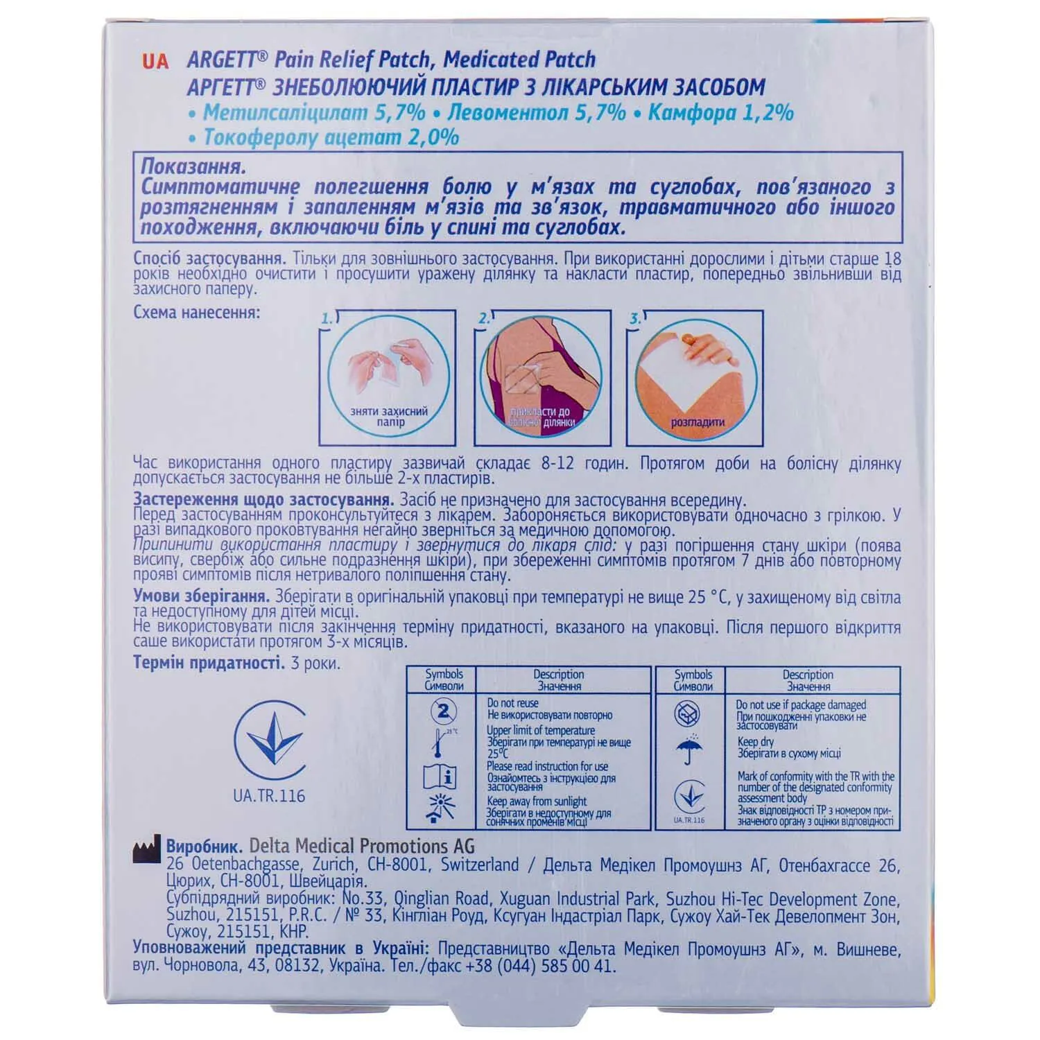 Argett plaster pain reliever with medicine for external use size 10cm x 12cm 5 pcs