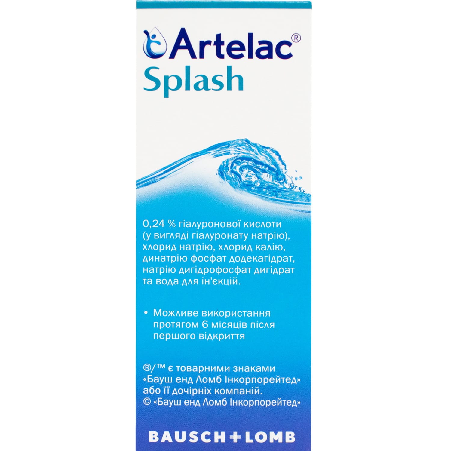 - “Artelac Splash” moisturizes the eyes for a long time and helps stabilize the tear film to ensure a healthy condition of the eye surface.