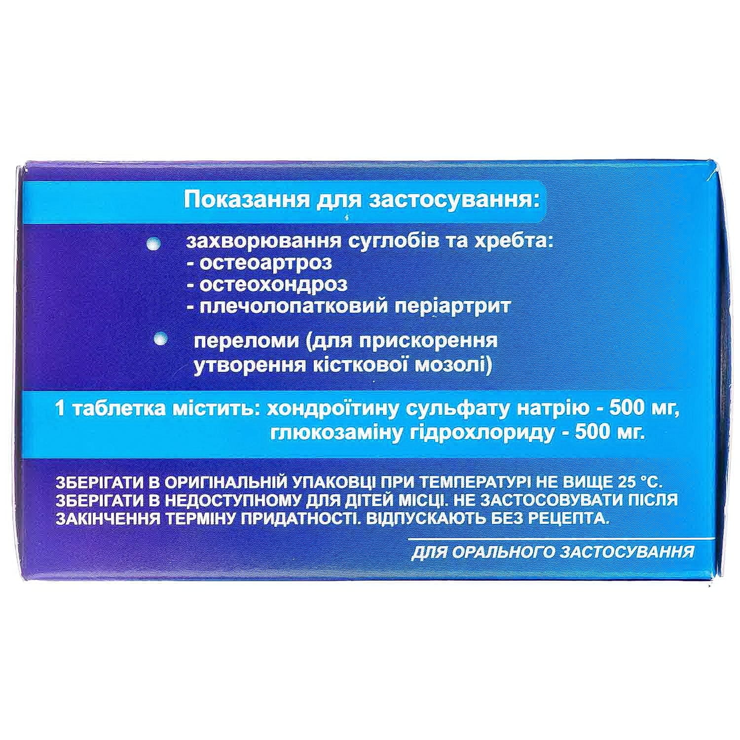 active ingredients: 1 tablet contains chondroitin sodium sulfate 500 mg, glucosamine hydrochloride 500 mg;
