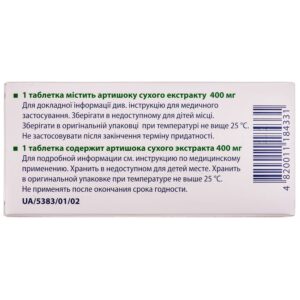 - 1 tablet contains 400 mg of artichoke dry extract;