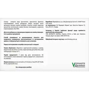 Purified water (solvent), fructose (sweetener), choline dihydrogen citrate, artichoke leaf extract, dandelion root extract, inositol, sodium hydroxide (acidity regulator), sodium benzoate (preservative), sucralose (sweetener).