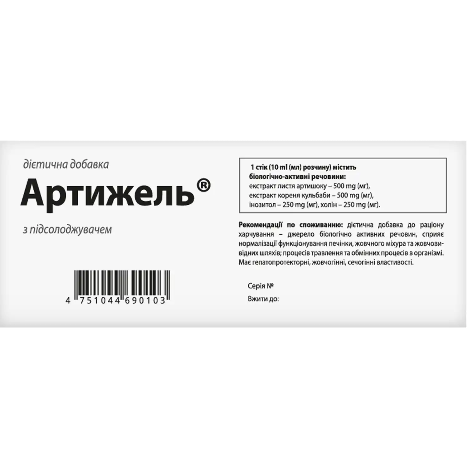 Dietary supplement Artizhel with sweeteners, drinking solution 10 ml (ml) in sticks of 20 pcs.