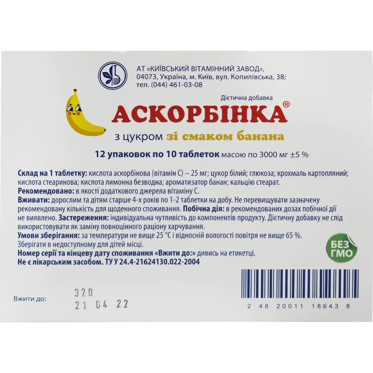Ascorbinka acid in the dietary supplement Ascorbinka Vitamin C with banana flavor has pronounced restorative properties. It is part of the group of water-soluble vitamins. It participates in redox reactions, regulation of carbohydrate metabolism, affects the metabolism of aromatic amino acids, thyroxine metabolism, biosynthesis of catecholamines, steroid hormones and insulin, is necessary for blood clotting, synthesis of collagen and procollagen, regeneration of connective and bone tissue. Improves capillary permeability. Promotes iron absorption in the intestine and participates in the synthesis of hemoglobin. Increases nonspecific resistance of the body, has antidote properties. Vitamin C deficiency in food leads to the development of hypo- and avitaminosis C, since this vitamin is not synthesized in the body.
