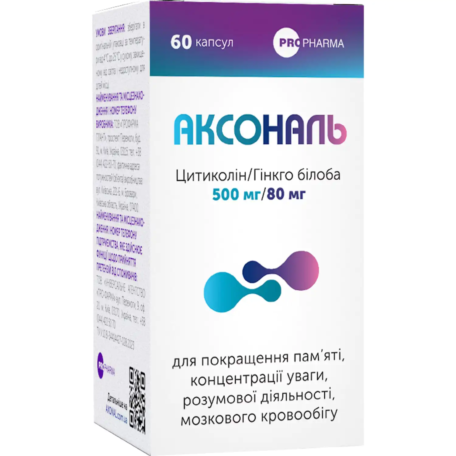 Axonal is a dietary supplement that helps maintain the normal functioning of the nervous system, improve memory, concentration, attention, learning, information analysis, mental activity, and improve cerebral circulation.