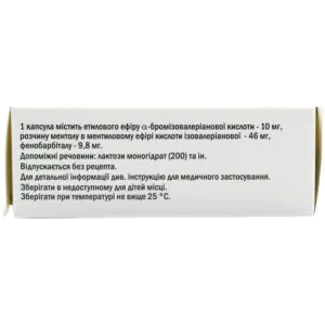 The presence of phenobarbital in the composition of the drug can lead to the risk of developing Stevens-Johnson syndrome and Lyell’s syndrome, which is most likely in the first weeks of treatment. long-term use is not recommended due to the risk of drug addiction, possible accumulation of bromine in the body and the development of bromine poisoning. in cases where the pain in the heart area does not go away after taking the drug, it is necessary to consult a doctor to rule out acute coronary syndrome. the drug should be prescribed with caution in decompensated heart failure, hypotension, hyperkinesis, hyperthyroidism, hypofunction of the adrenal glands, acute and constant pain, acute drug intoxication.