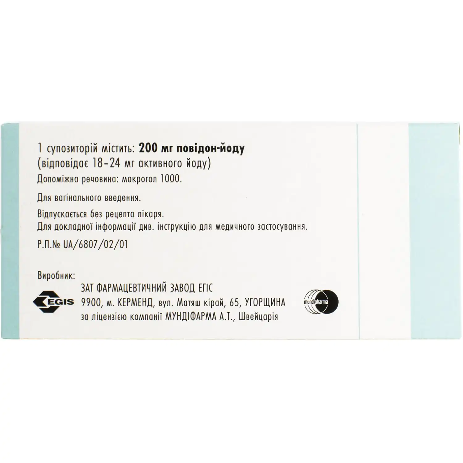 1 vaginal suppository contains 200 mg of povidone-iodine (corresponding to 18-24 mg of active iodine);