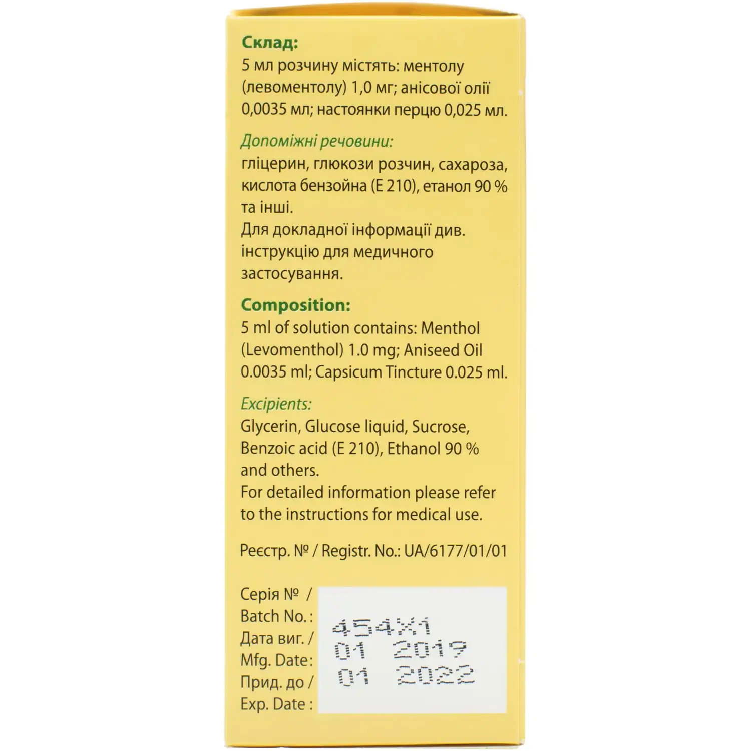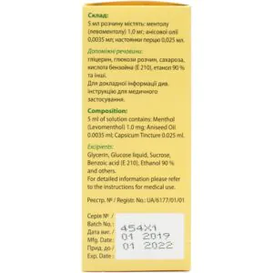 Menthol has an antispasmodic, antiseptic, local anesthetic effect, helps cleanse the respiratory tract of mucus. Anise oil has expectorant properties, antispasmodic and antibacterial effects. Pepper tincture has a distracting effect.