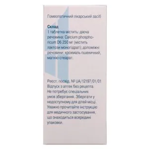 active ingredient: 1 tablet contains Calcium phosphoricum D6 250 mg (contains lactose monohydrate);