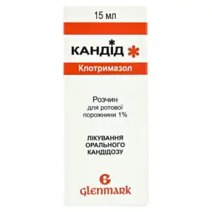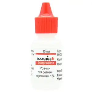 Candid oral solution 1% 15 ml — antifungal medicine for local treatment of oral candidiasis and pharyngomycoses with clotrimazole.