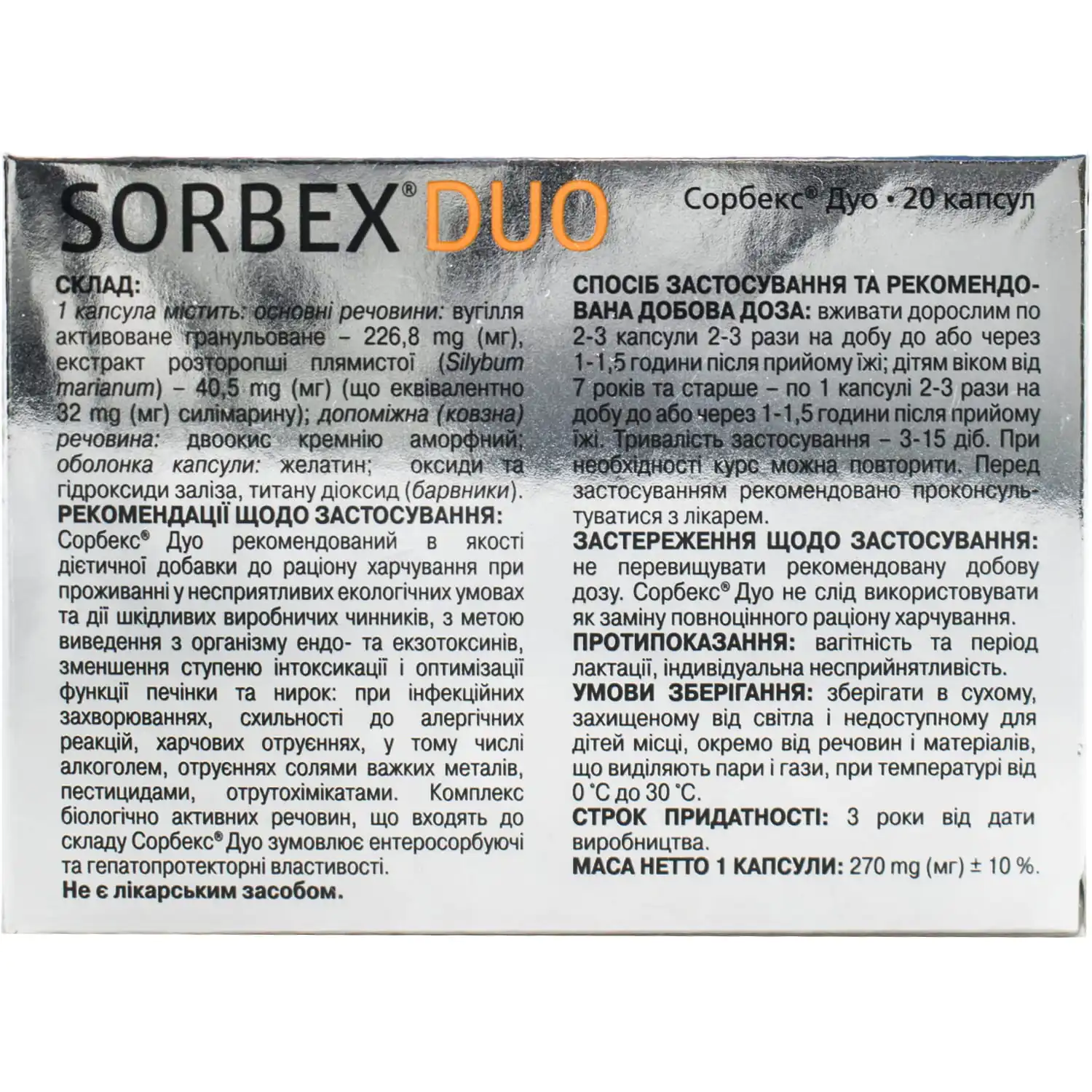 “Sorbex Duo” is a means for cleansing the body, which allows you to reduce the load on the detoxification systems and create a “protective regime” that helps restore liver function.