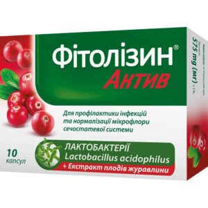 “Phytolysin Active” is a product that combines two components: highly concentrated cranberry extract, standardized for its Proanthocyanidin content, and probiotic bacteria (Lactobacillus acidophilus SD-5212).