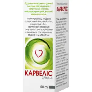 Adults take 30 drops (1.2 ml) of Carvelis 3 times a day, having previously dissolved the drops in a small amount of liquid.