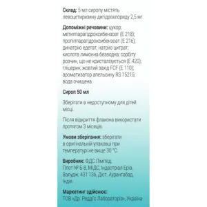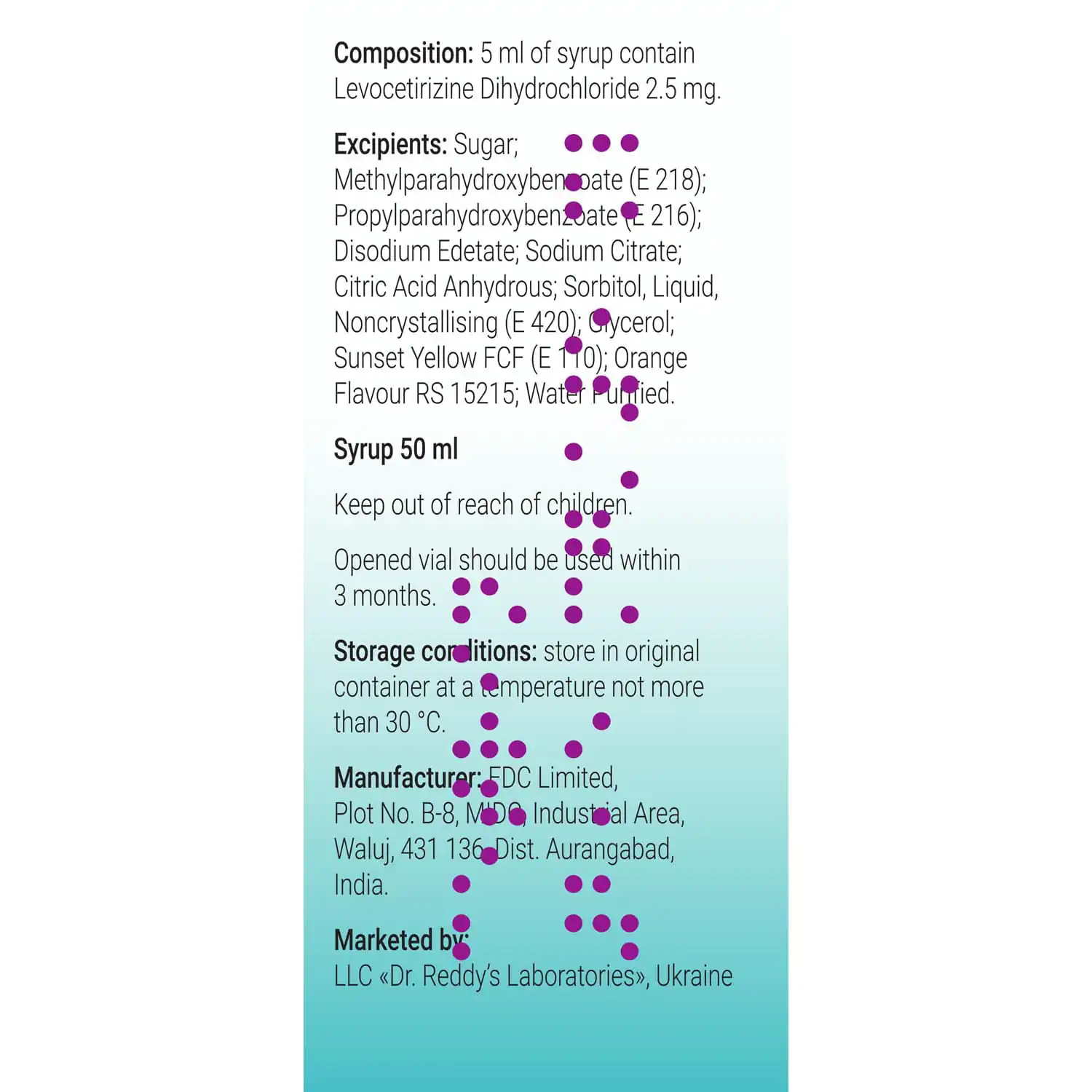 - 5 ml of syrup contains levocetirizine dihydrochloride 2.5 mg;