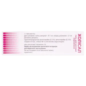 The effects of the drug are due to the synergistic effect of its components: anti-inflammatory, analgesic and antiseptic. the main active substance of the drug – choline salicylate – has a local anti-inflammatory and weak analgesic effect. the mechanism of analgesic, antipyretic, and anti-inflammatory action of salicylates is associated with inhibition of COX activity, as well as thromboxane synthetase activity. as a result, the synthesis of prostaglandins is inhibited, primarily prostaglandins e and f in tissues affected by inflammation, in the wall of the gastrointestinal tract and kidneys. used locally, in normal doses it does not have a systemic effect. Cetalkonium chloride enhances the analgesic and anti-inflammatory effect. antiseptics included in the base gel, methyl parahydroxybenzoate and propyl parahydroxybenzoate (in concentrations of 0.15 and 0.08%, respectively) have an antibacterial effect.