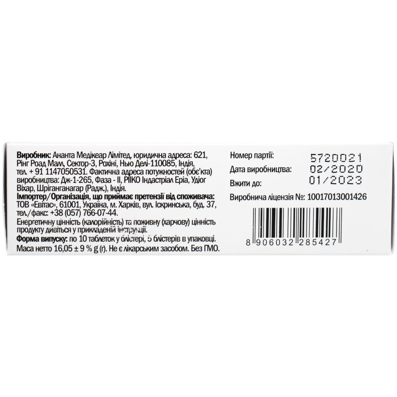 • Bile dry extract (Bile dry ext.) – 80 mg (mg).