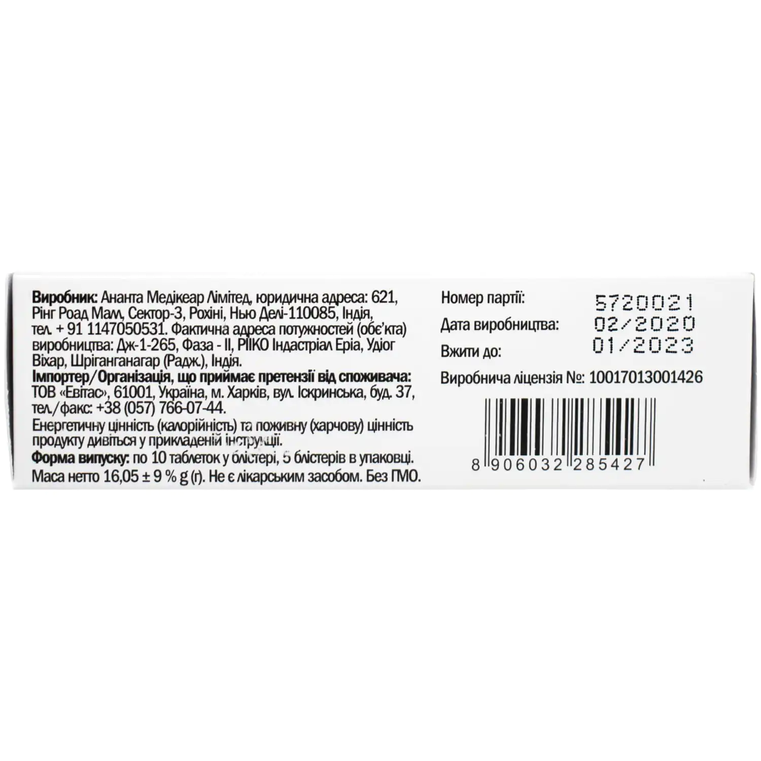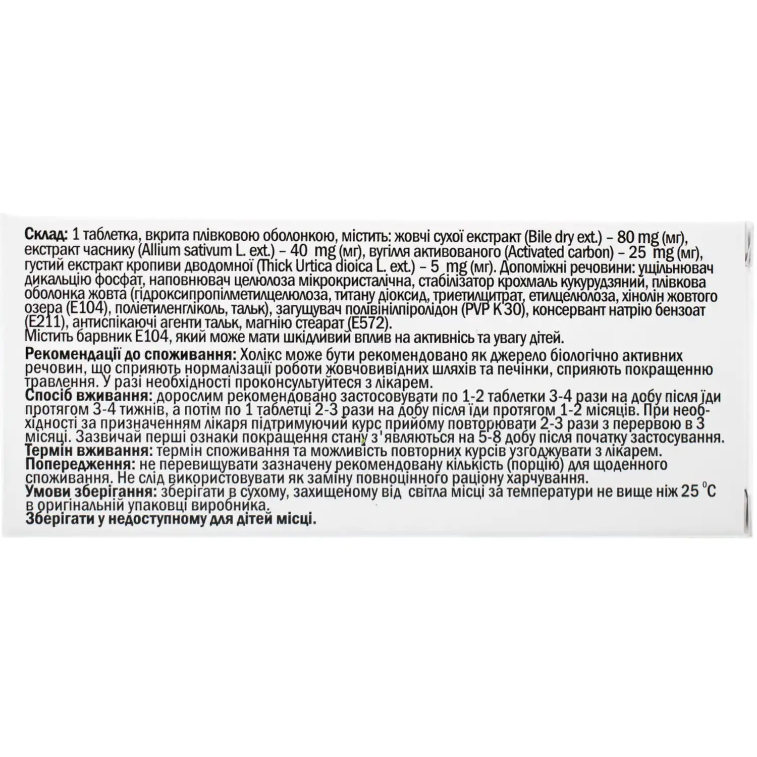 - Bile dry extract (Bile dry ext.) – 80 mg (mg).