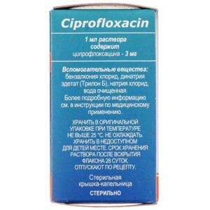 - 1 ml of solution contains 3 mg of ciprofloxacin;