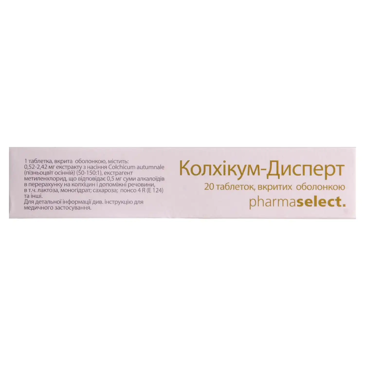 1 film-coated tablet contains 0.52-2.42 mg of Colchicum autumnale seed extract (50-150:1), extractant methylene chloride, corresponding to 0.5 mg of the sum of alkaloids in terms of colchicine;
