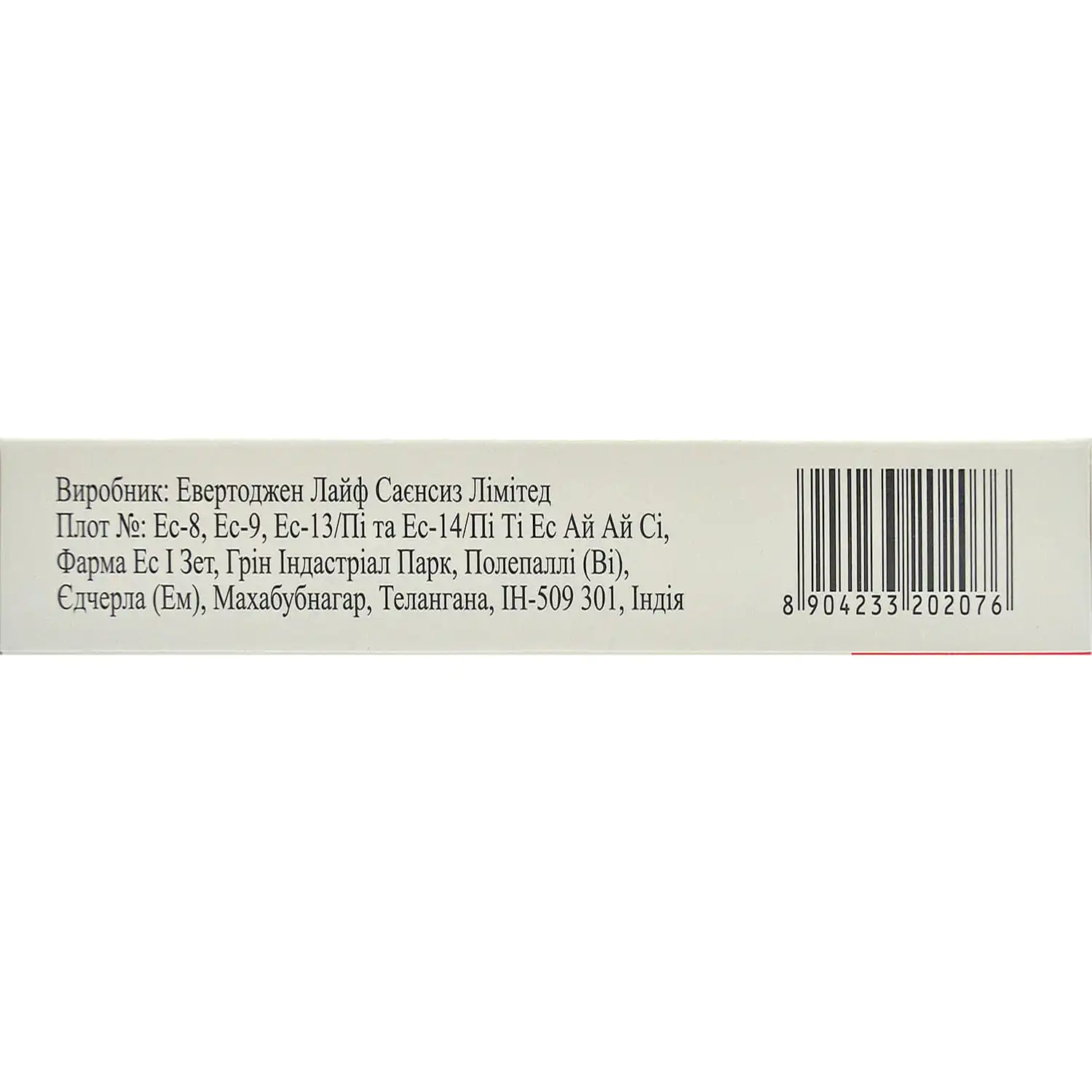 Excipients: corn starch, microcrystalline methylcellulose, povidone, magnesium stearate, talc, colloidal anhydrous silicon dioxide, sodium starch glycolate (type A).