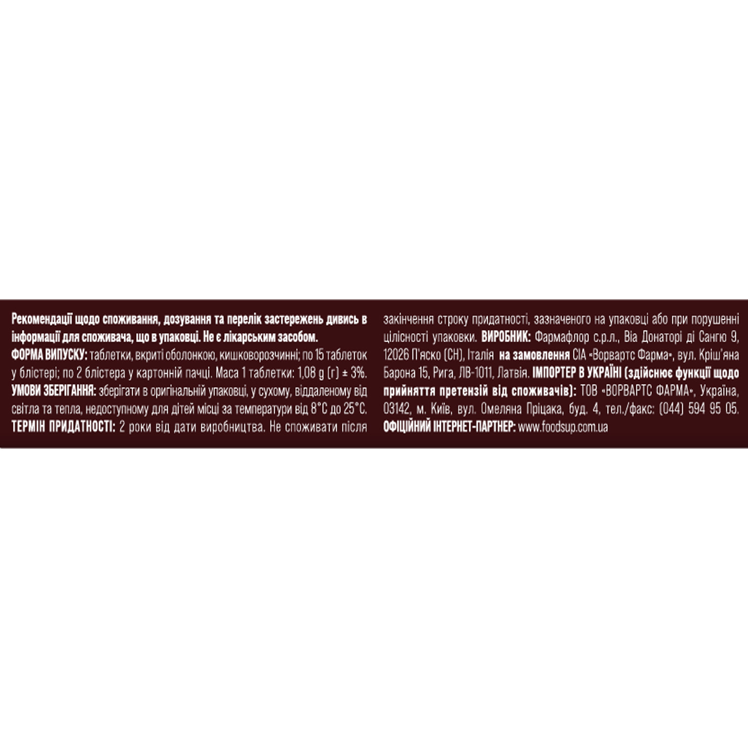 Tauroursodeoxycholic acid (TUDCA), microcrystalline cellulose, hydroxypropyl methylcellulose, high viscosity hydroxypropyl methylcellulose, dibasic calcium phosphate (thickeners), silicon dioxide (glazing agent), corn starch (stabilizer), magnesium stearate (anti-caking agent), film-forming mixture AquaPolish® F white 019.160 MS, containing: hypromellose, isomalt (thickeners), calcium carbonate (dye), stearic acid (stabilizer), copper complexes of chlorophylls (dye).