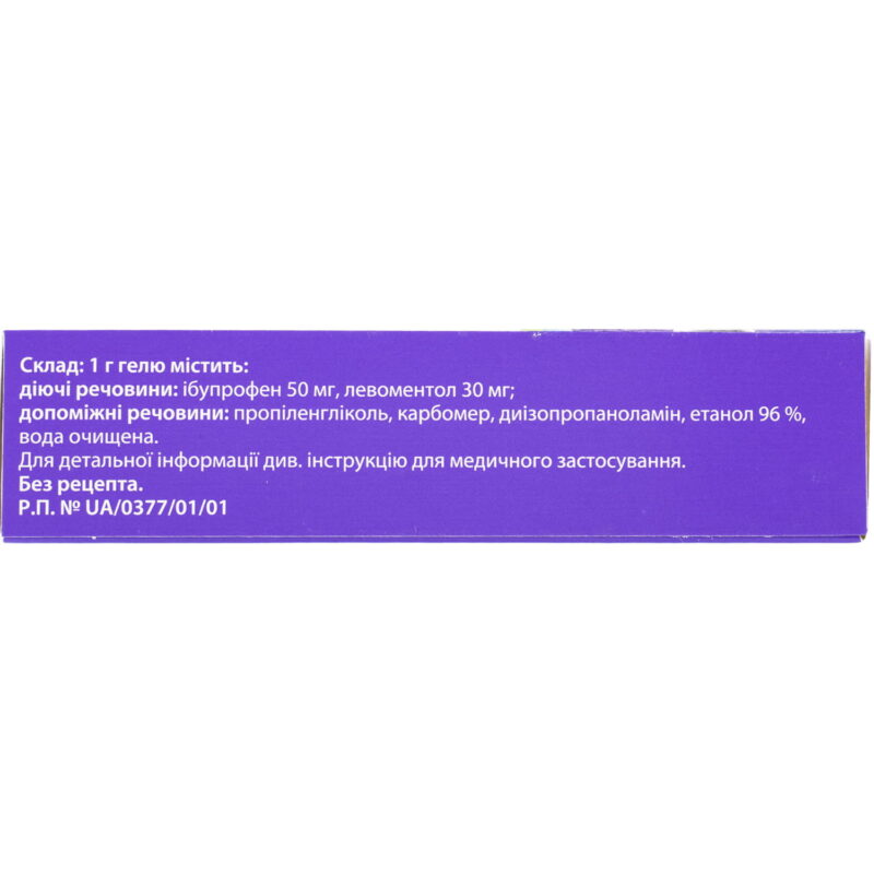 Pharmacokinetics. Ibuprofen is well and quickly absorbed through the skin when applied topically. A very small amount enters the systemic bloodstream. Cmax of ibuprofen in the blood plasma is reached 2 hours after the use of the drug and is 0.6 μg/ml. The amount of absorption of ibuprofen with local application is ≈5% of the amount of absorption with oral administration.