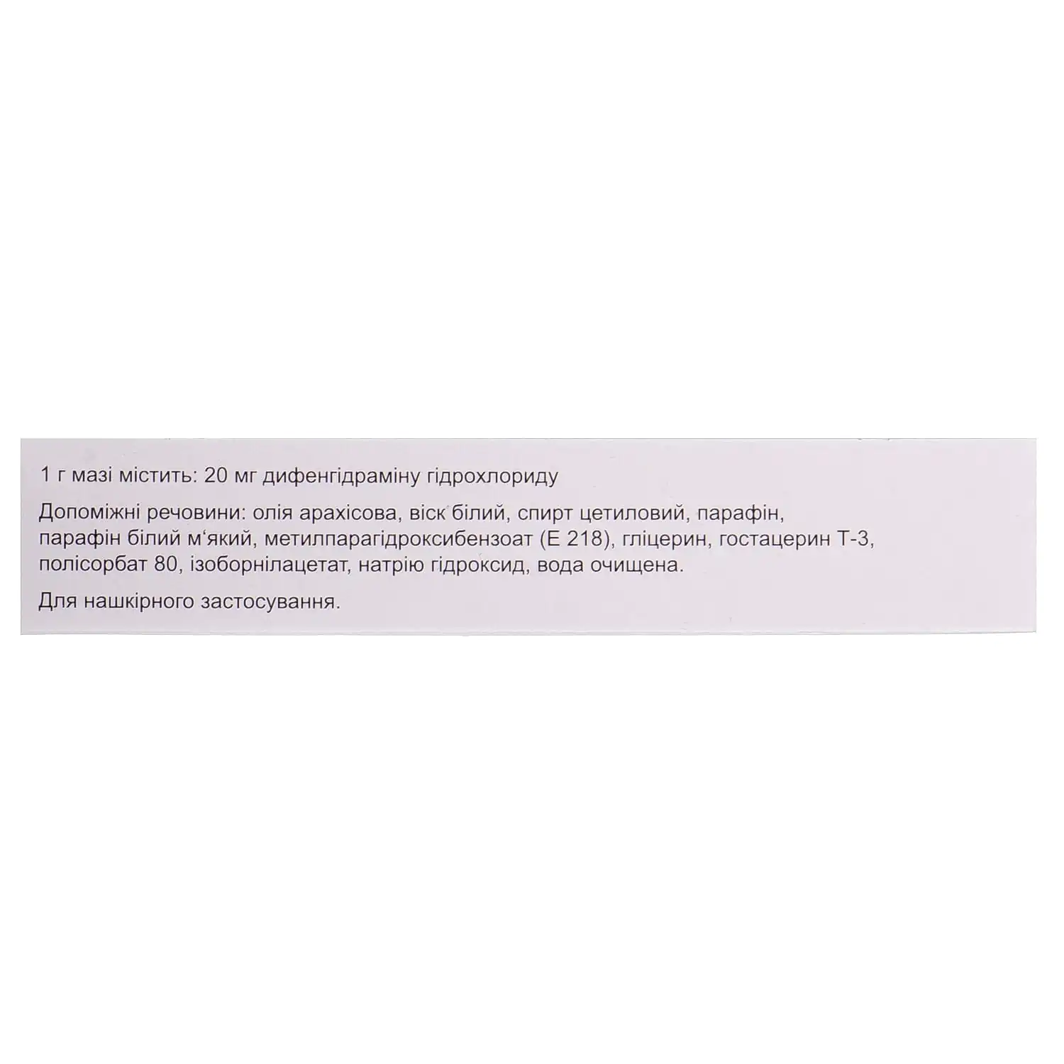- 1 g of ointment contains 20 mg of diphenhydramine hydrochloride;