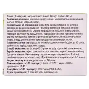 Ginkgo biloba extract (Ginkgo biloba) – 80 mg.