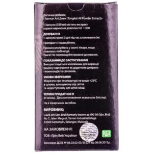 1 capsule contains Eurycoma longifolia root extract – 350 mg.