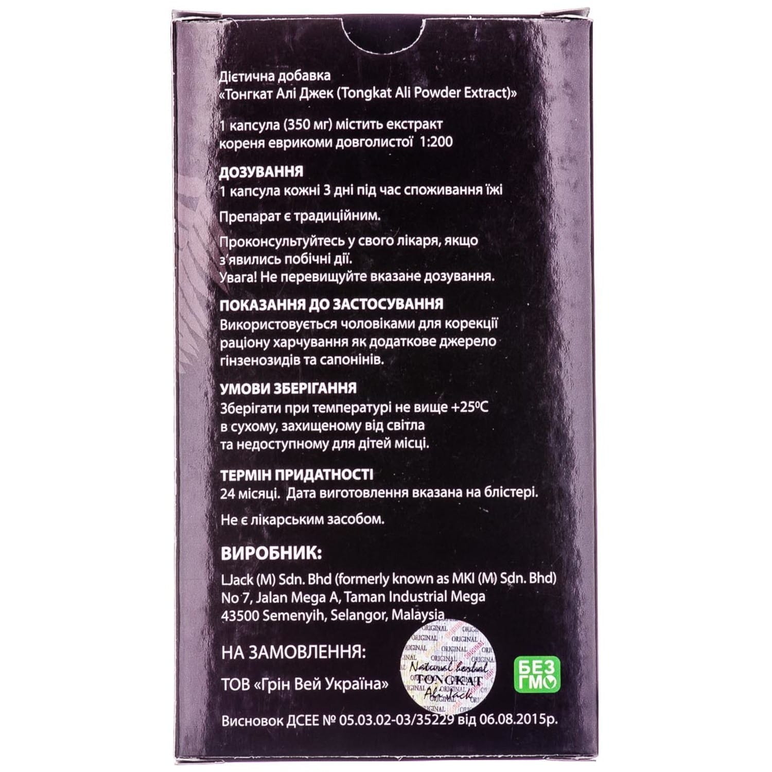 Strict quality control at all stages of production ensures that Natural Herbal Tongkat Ali Jackâ„¢ is a product of the highest quality. Each capsule contains standardized biologically active ingredients that are formulated based on dose-effect studies.