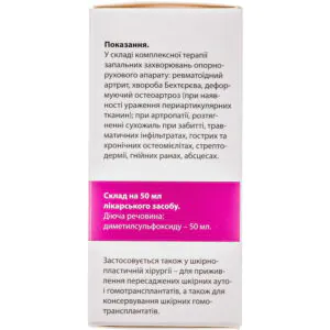 - as part of the complex therapy of inflammatory diseases of the musculoskeletal system: rheumatoid arthritis, Bekhterev’s disease, deforming osteoarthritis (in the presence of periarticular tissue damage); in arthropathy, stretching of tendons in case of hammering, traumatic infiltrates, acute and chronic osteomyelitis, streptoderma, purulent wounds, abscesses;