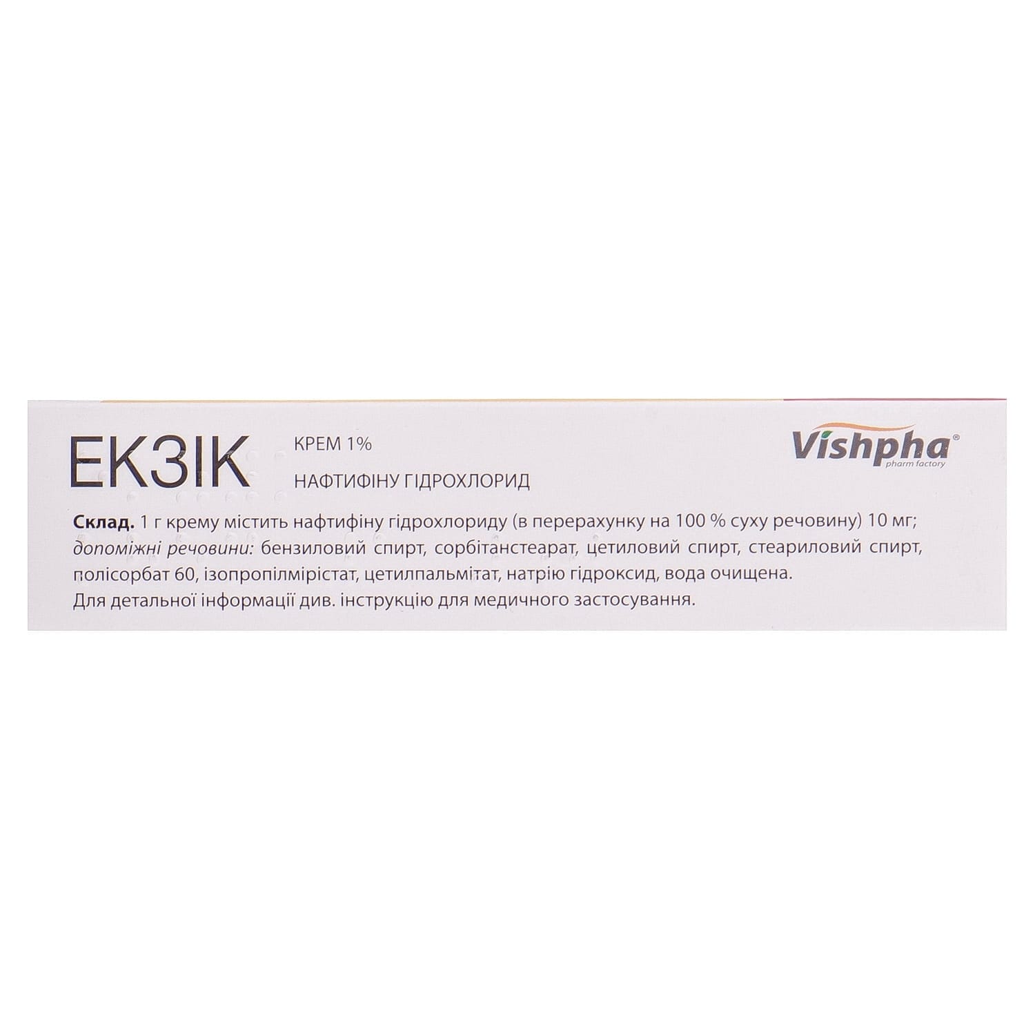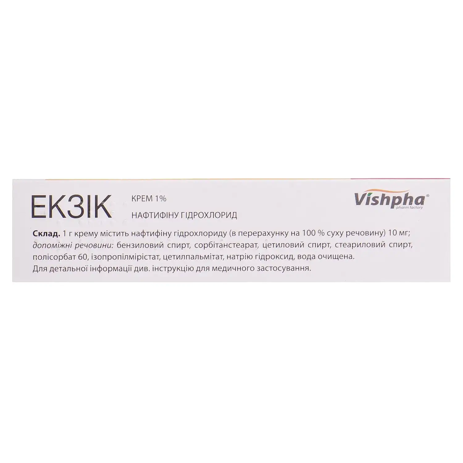 Pharmacokinetics. Naftifine hydrochloride is rapidly absorbed and forms stable antifungal concentrations in different layers of the skin. About 4% of the dose applied to the skin is absorbed, so the systemic exposure of the active substance is extremely low. Only trace amounts of naftifine are found in blood plasma and urine. The active substance is almost completely metabolized; metabolites do not have antifungal activity and are excreted in feces and urine. T ½ – 2-4 days.