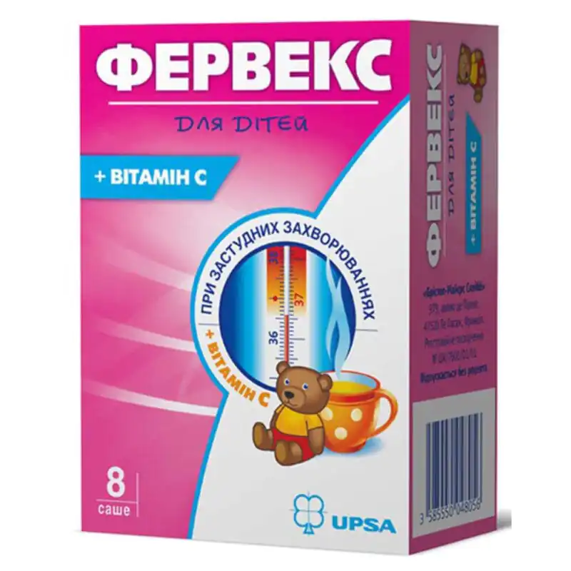 Fervex for children. Hypersensitivity to the components of the drug or antihistamines, severe liver and / or kidney dysfunction, phenylketonuria, congenital hyperbilirubinemia, glucose-6-phosphate dehydrogenase deficiency, alcoholism, blood diseases, severe anemia, leukopenia, severe hypertension, unstable angina, severe cardiac conduction disorders, acute myocardial infarction, severe atherosclerosis, decompensated heart failure, hyperthyroidism, acute urinary retention in prostatic hypertrophy, bladder neck obstruction, pyloroduodenal obstruction, gastric and duodenal ulcer in the acute stage, glaucoma, thrombosis, thrombophlebitis, severe forms of diabetes mellitus, epilepsy. Do not use together with MAO inhibitors and within 2 weeks after stopping the use of MAO inhibitors. Contraindicated in patients taking tricyclic antidepressants or β-adrenergic blockers. Urolithiasis – provided that ascorbic acid enters the body at a dose of 1 g/day.