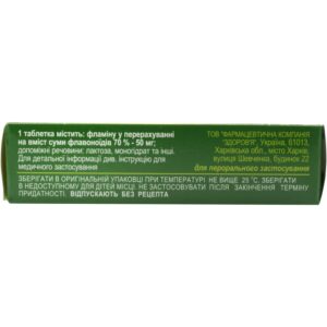 One tablet contains (active ingredient) flamine in terms of the content of the sum of flavonoids 70% – 50 mg.