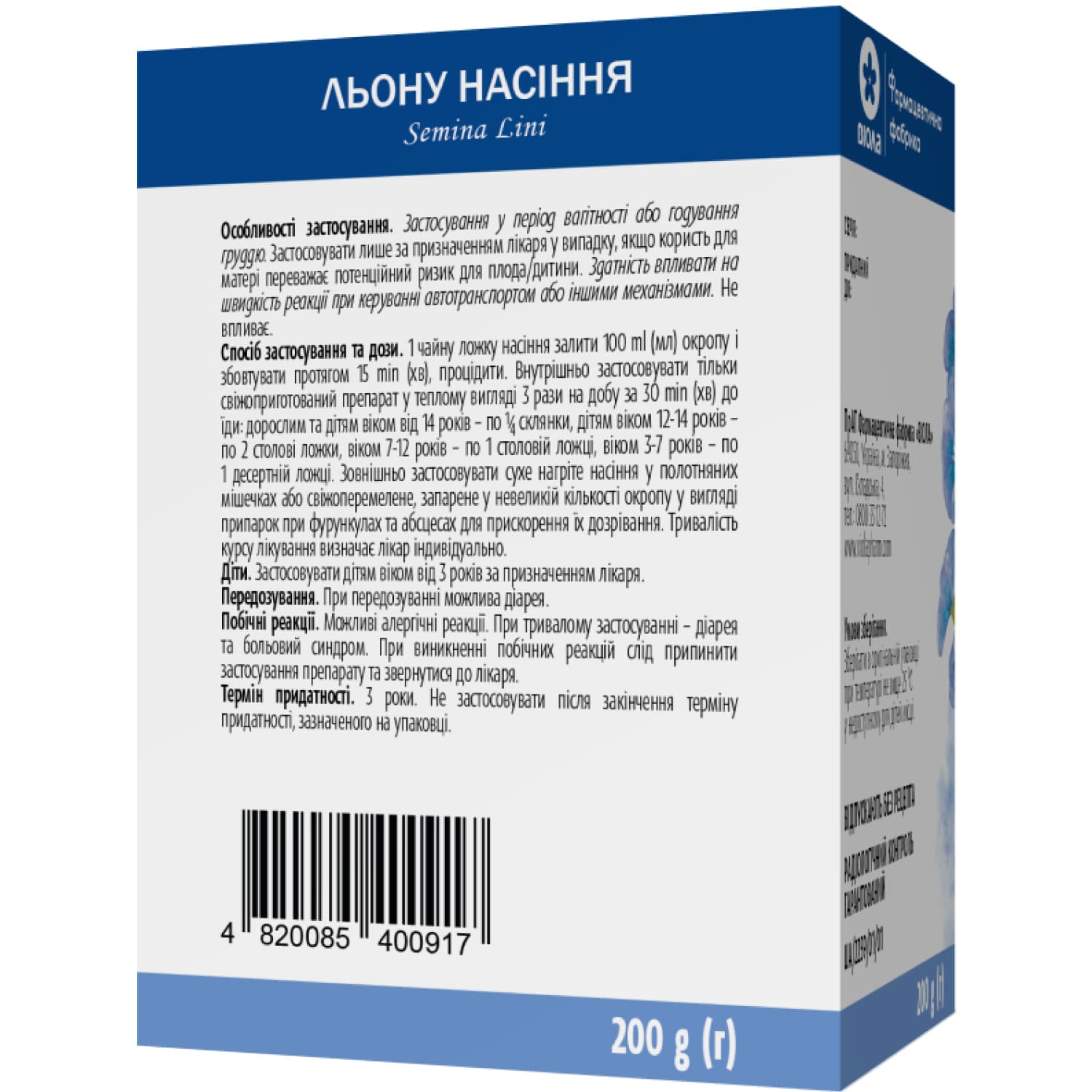 1 pack contains flax seeds (Semina Lini) – 200 g.
