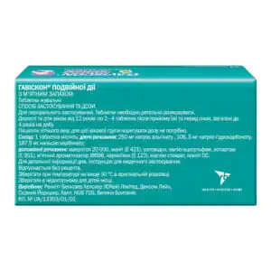 Gaviscon Double Action, suspension. Adults and children over 12 years of age – 10-20 ml (2-4 teaspoons) after meals and before bedtime, up to 4 times a day. Shake before use. Dose should not be adjusted for elderly patients.