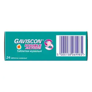 Gaviscon Double Action, tablets. Tablets should be chewed thoroughly. Adults and children over 12 years of age: 2-4 tablets after meals and at bedtime, up to 4 times a day.