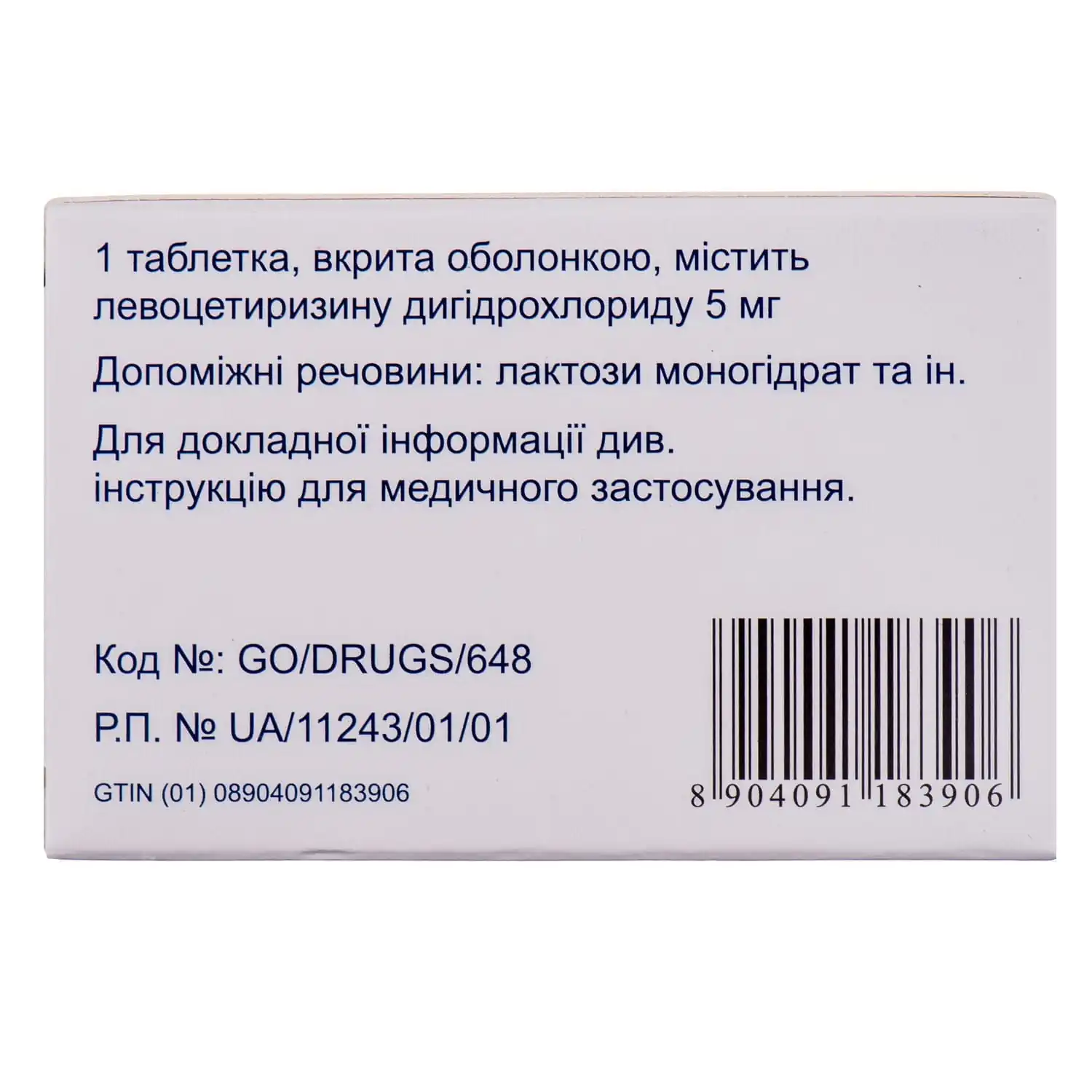 1 tablet contains levocetirizine dihydrochloride 5 mg;