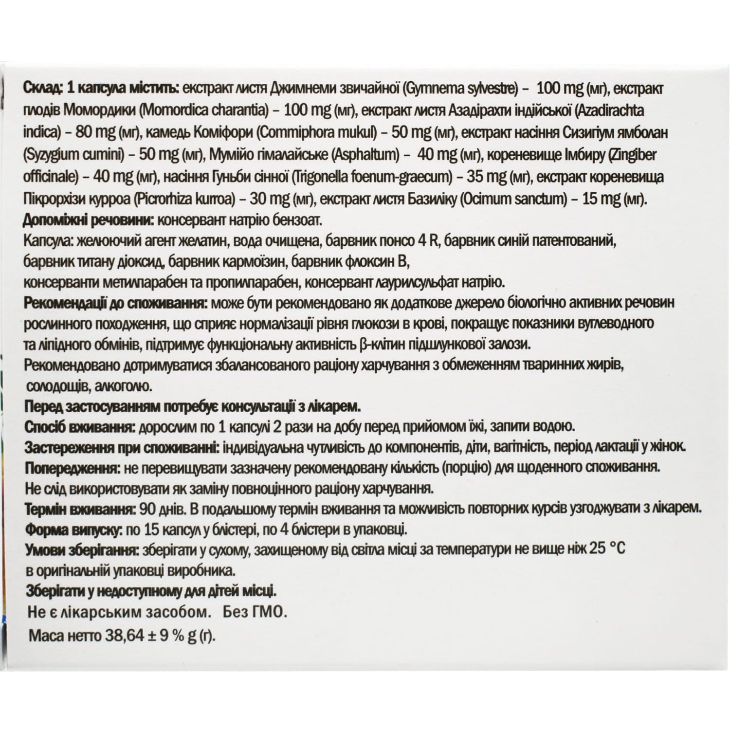 - Bitter melon fruit extract (Momordica charantia) – 100 mg.
