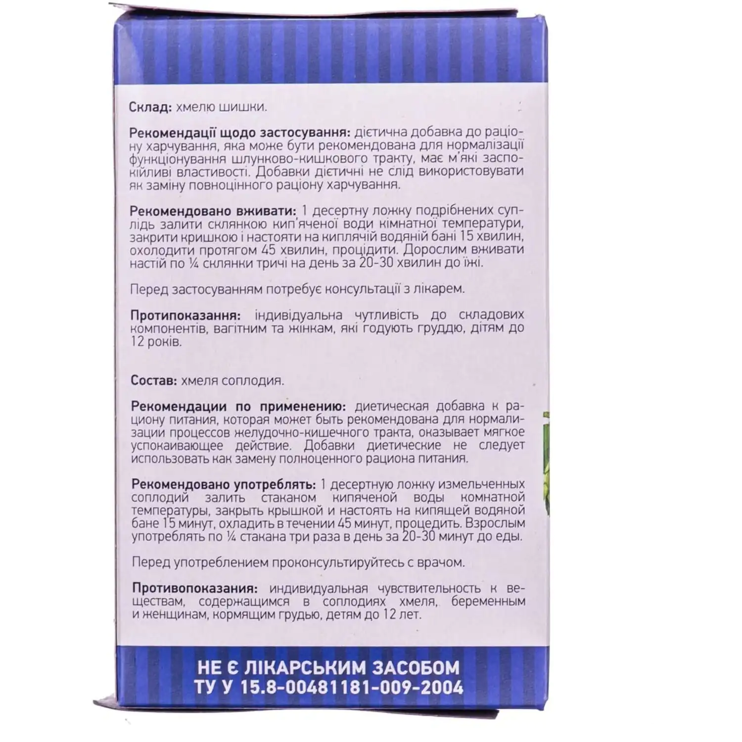 “Hop cones” is a dietary supplement that can be recommended for normalizing the functioning of the gastrointestinal tract, has mild sedative properties.